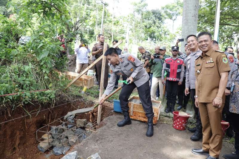 Kapolda Jabar Irjen Pol Dr Akhmad Wiyagus didampingi Bupati Bandung Dr HM Dadang Supriatna, Kapolresta Bandung Kombes Pol Dr Kusworo Wibowo dan jajaran Forkopimda Kabupaten Bandung serta para pihak lainnya hadir langsung pada pelaksanaan peletakan batu pertama pembangunan Mako Polsek Arjasari tersebut.