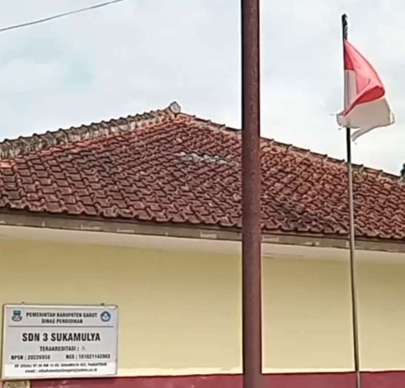 Sungguh Terlalu……!!! Bendera Sobek, Lusuh, Kusam, Dan Rusak di Biarkan Berkibar di Halaman SDN Sukamulya 3 Pangatikan Garut