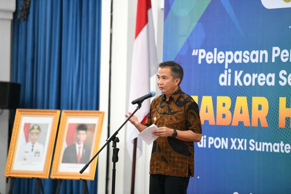 KOTA BANDUNG, Idisi Online,- Penjabat (Pj.) Gubernur Jawa Barat Bey Machmudin melepas atlet Jabar untuk melakukan pemusatan latihan di Korea Selatan. Pelepasan bertajuk Pelepasan Pemusatan Latihan di Korea Selatan untuk Jabar Hattrick di PON XXI Sumatera Utara-Aceh 2024 tersebut berlangsung di Gedung Sate, Kota Bandung, Jumat (5/7/2024).