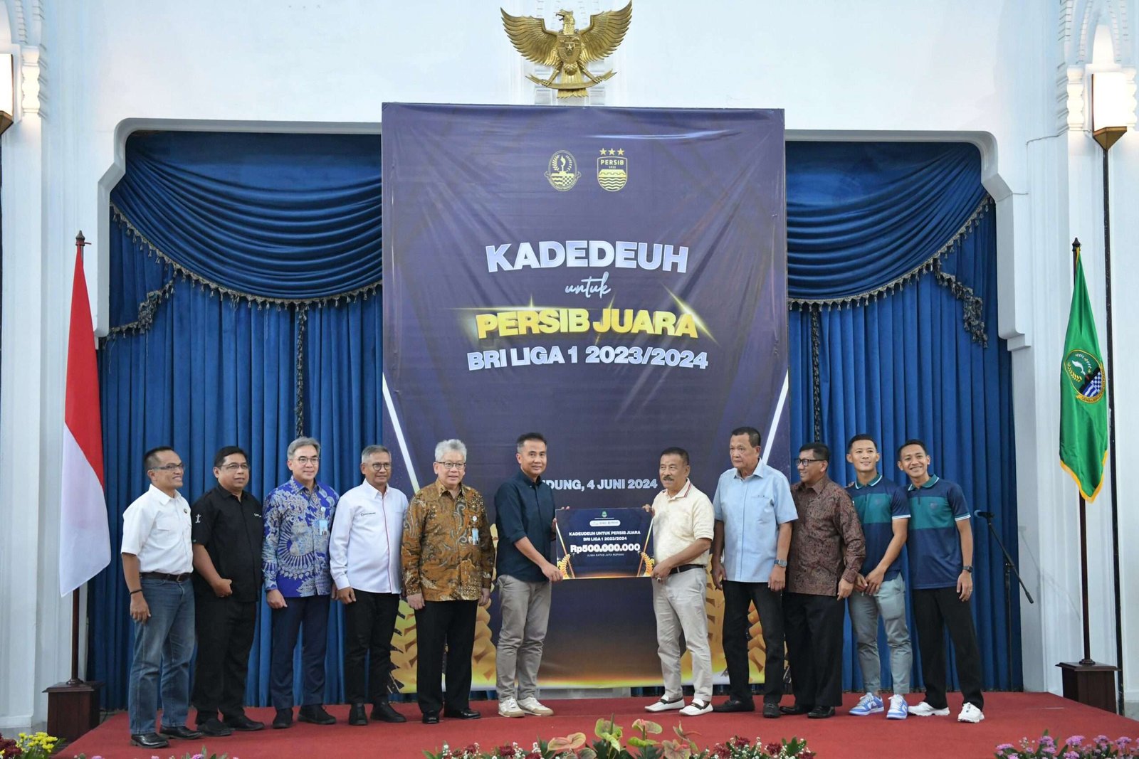 KOTA BANDUNG, Idisi Online,- Penjabat Gubernur Jawa Barat Bey Machmudin menyerahkan kadeudeuh kepada pemain Persib Bandung yang berhasil menjuarai Liga 1 2023-2024 di Aula Barat Gedung Sate, Kota Bandung, Selasa (4/6/2024).