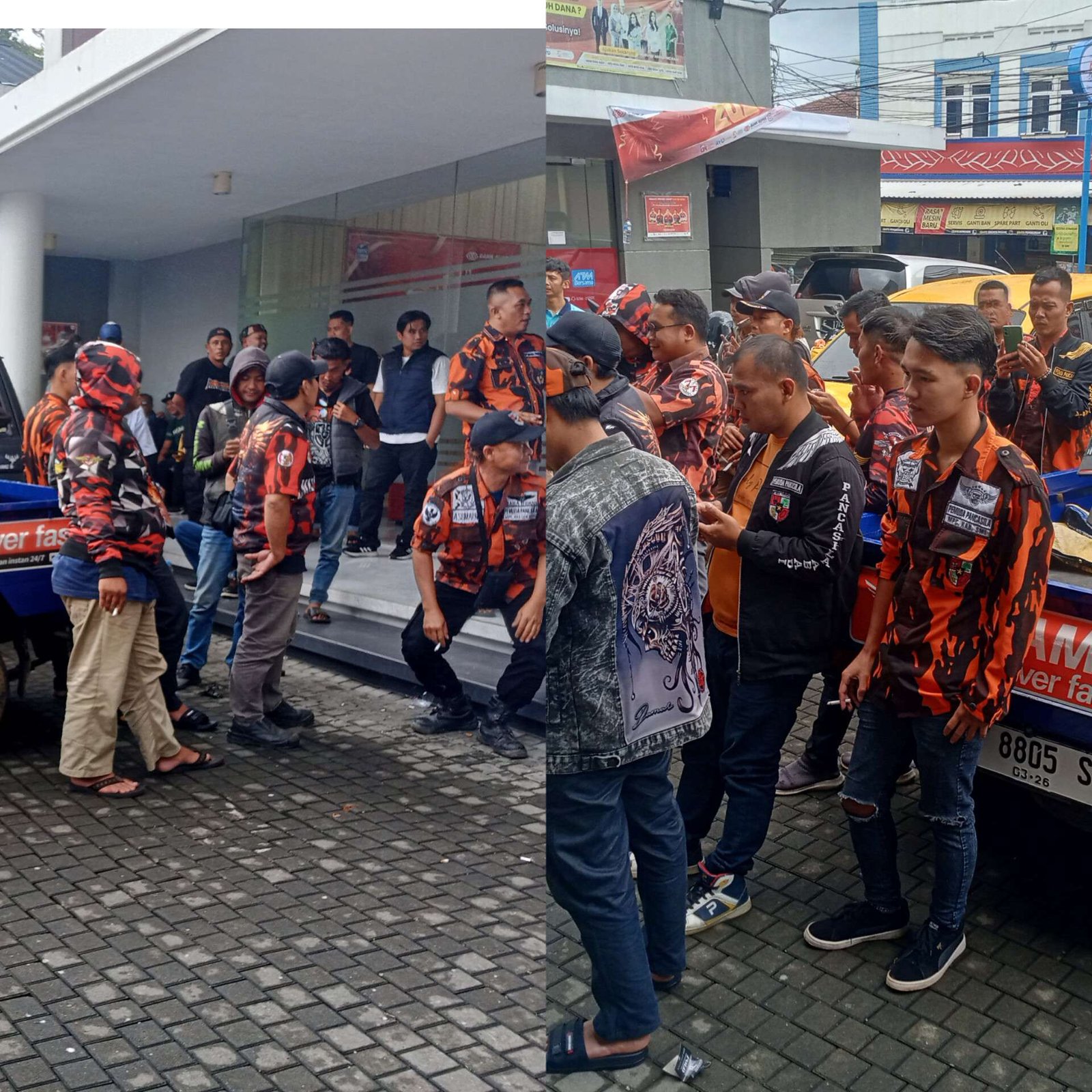 Akhirnya Puluhan masa Pemuda Pancasila geruduk Bank Supra yang beralamat di Jalan Pelabuhan II Kota Sukabumi, Senin 13 Januari 2025.