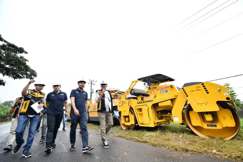Saat mengecek jalan yang sedang diperbaiki, Bey Machmudin didampingi oleh Kadis Bina Marga Jabar Bambang Tirtoyuliono dan Penjabat Bupati Cirebon Wahyu Mijaya.