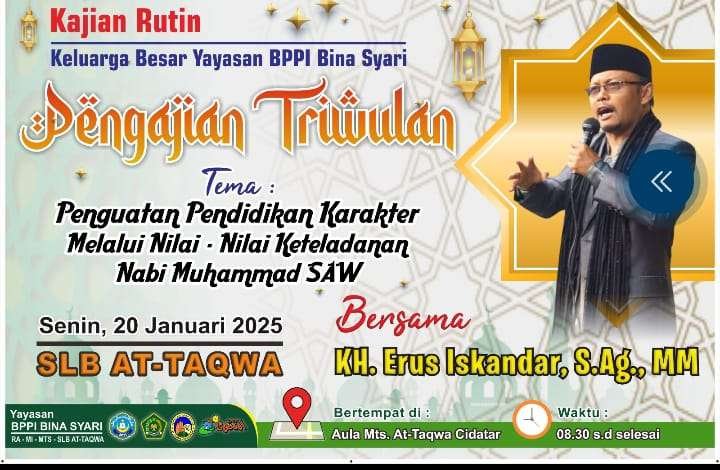 Seperti saat acara rutinan yang digelar oleh Yayasan BPPI Bina Syar’i At-Taqwa Cidatar. Dalam acara pengajian rutin Triwulan itu, H. Erus sebagai penceramah.