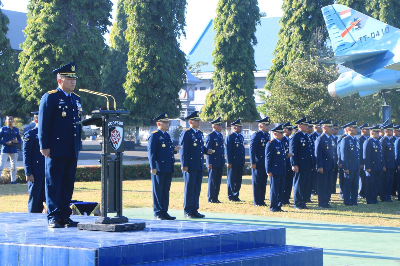 Bertindak selaku Inspektur Upacara (Irup) Kepala Staf Komando Operasi Udara (Kaskoopsud) ll, Marsma TNI Azhar Aditama Djojosugito, S.Sos., M.M., M.Han.