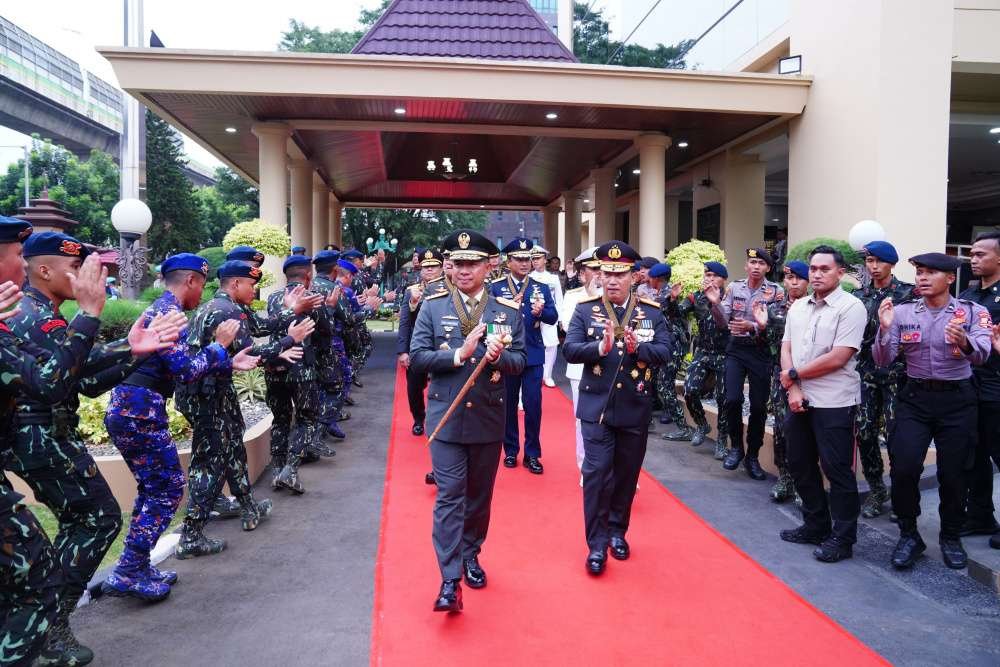 Jakarta Selatan, Idisi Online,- Panglima TNI Jenderal TNI Agus Subiyanto, S.E., M.Si., beserta para Kepala Staf Angkatan, menerima Penganugerahan Bintang Bhayangkara Utama dari Kepolisian Republik Indonesia (Polri) yang diserahkan oleh Kapolri. Acara berlangsung di Ruang Rupatama, Mabes Polri, Jl. Trunojoyo, Jakarta Selatan, Jumat (04/10/2024).